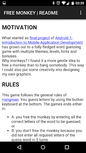 Why monkeys? I found it a more gentle idea to free a monkey than to hang somebody. This way I could also put some creativity into designing my own graphics.
