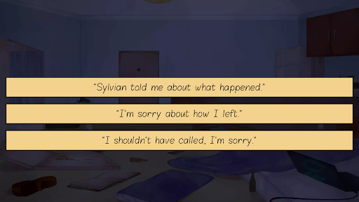 Talk to Me is a Visual Novel about grief, mental health and friendship intended for audiences over the age of 18. Please note there are suggestive scenarios but no explicit images in the game. This can be a hard game to play if you’re depressed or have just lost someone close to you, so please be aware of that, along with the trigger warnings shown at the beginning of the game.