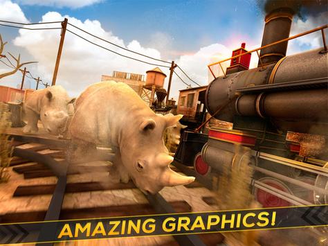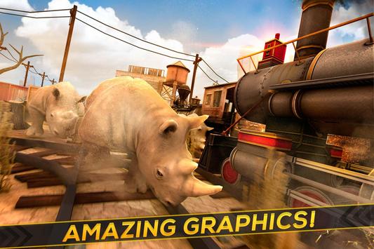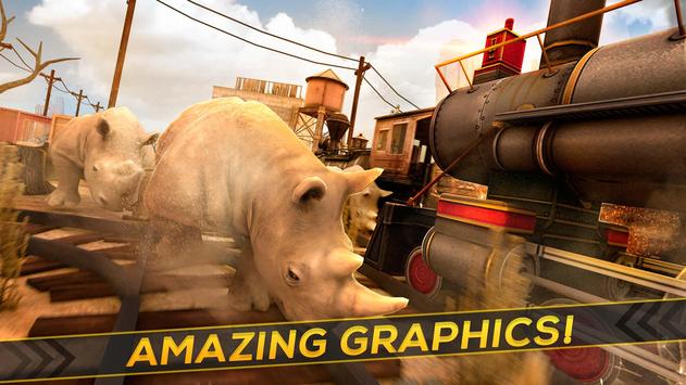 In this train driving simulator you can drive your train along the safari tracks and enjoy the magic of the nature, but of course, we thought there should be some dangers stalking you. What could be funnier than running against animals? You know, no pain, no gain. This is why you will face rhinoceroses in this locomotive game. Enjoy the nature of the majestic animals and drive through their habitats.