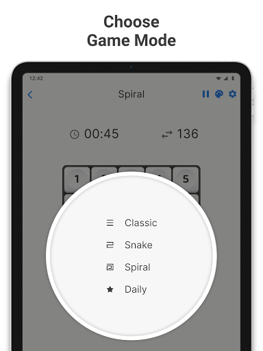 • 3 game types for you: "Classic", "Snake" and "Spiral"