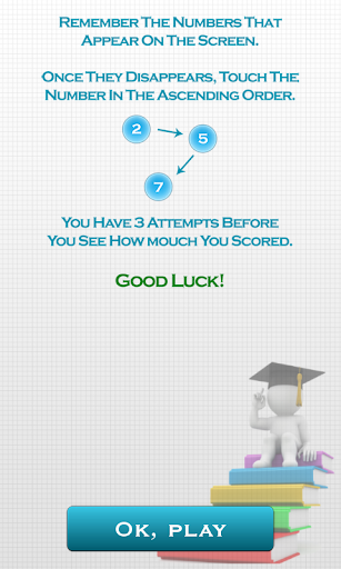 Brain Test Pro Game is a memory based game. Player can check his concentration and memory power,By seeing some numbers shown on game screen which numbers disappear in some moment.Now you have to find out those numbers in ascending order by using your memory power. Keep practice daily and check your performance by clicking progress button , Where your Top 5 Scored will shown.