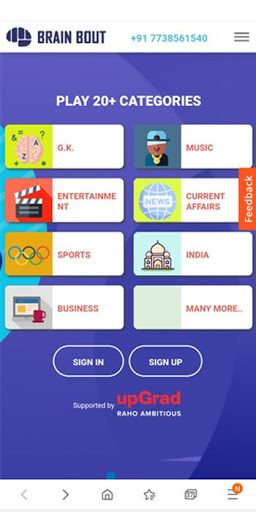 Brain Bout is a community quizzing platform that allows you to play during any time of the day without waiting for appointments. Questions will come to you as per the categories that you would have chosen during the time of sign up to make it extremely personalised. It is first such application that shows different questions to different appointments while maintaining the same difficulty level using artificial intelligence technology. This means you are playing to your strength always. You can change your categories for quizzing from ‘my account’.