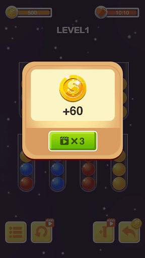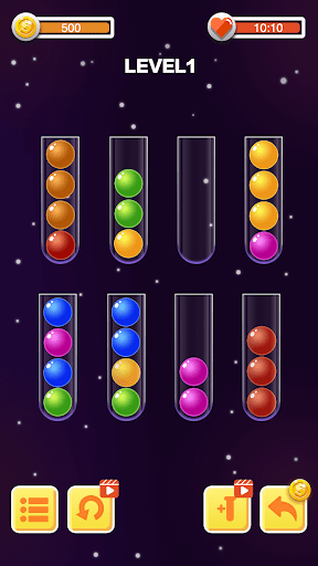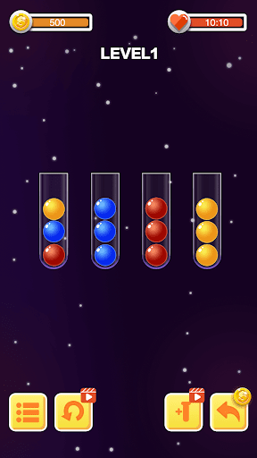 -Tap the tube to move the bubble. Only bubbles of the same color can be put together.