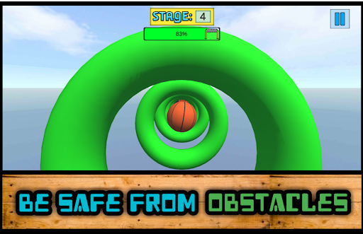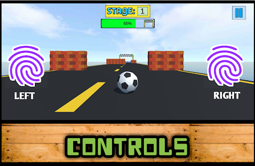 A ball is rolling on the road. Save the ball from the obstacles by moving it left and right and try not to get fall down into the void.