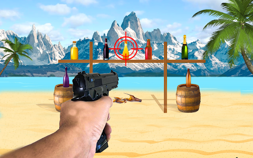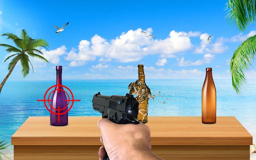 Bottle Shooting Target Real Bottle Shooter game has many thrilling missions and challenges to judge your shooting games expertise. Take you gun and have fun with smashing bottles in 3d shooting fun games. This bottle shooting adventure game provides you with a spin wheel carrying multiple bottles to shoot them in very challenging environments. Bottle shooting simulator games provides skills of shooting on the seashore. Be brave! Shoot targets and become Real Bottle Shooting Hero.