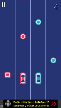 The aim of the game is to get the maximum number of points getting the circles and avoiding the squares while you drive both cars. You can change the side of each car just typing the screen.