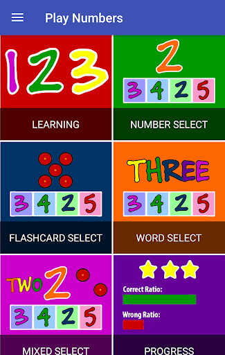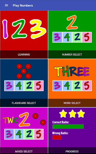 Play Numbers is an educational activity for kids to learn numbers. It will teach them the numbers step by step with the combination of numeric characters, words and flashcards. It will speak the number for the kid as well. There are activities in the app that are designed for them to play with the numbers. Those activities will train their brain to differentiate the numbers and identify them with the numeric characters, words and flashcards.