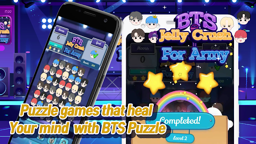 Come join the fun in BTS Jelly Crush For Army, an amazing adventure filled with free with bonuses and no wifi needed. Play anytime and anywhere. Solve puzzles in one of the cutest and charming BTS Jelly games in the 3 in a row world! Easy and fun, challenging for the mind, and a great exercise for the brain!