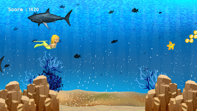 Swim and escape from hungry shark attack.You should make maximum score before shark catch you. More careful in shark attack will accelerate with each passing second.