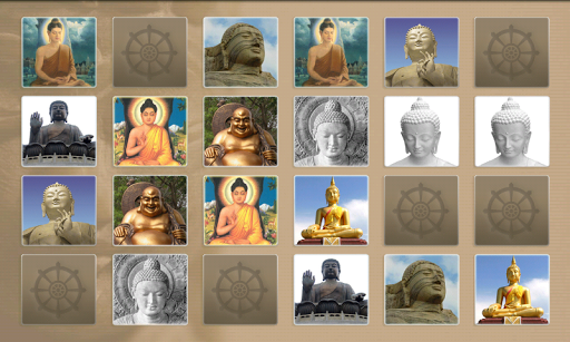 Train your memory with this Buddhism oriented memory game - relaxing fun for children and adults :) Just touch the screen and open a beautiful card with a picture of Buddhas from different Buddhist traditions. They close when you touch the next card or stay open if you found a pair.