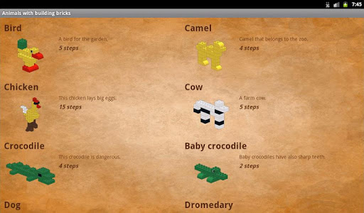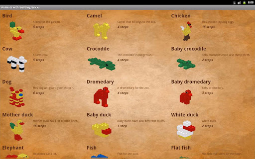 Description of Animals with building bricks
