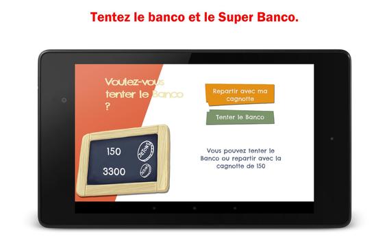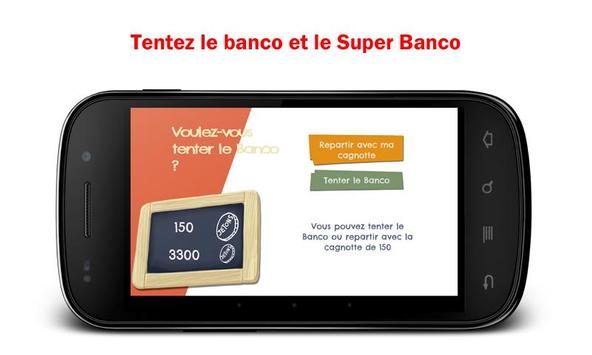 Préparez-vous vous à relever le challenge des questions bleues, blanches, et rouges, qui vous amèneront indubitablement à tenter le banco et le super banco !