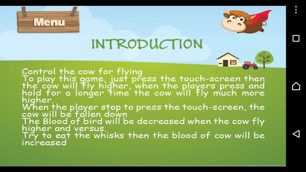 To play this game, just press the touch-screen then the cow will fly higher, when the players press and hold for a longer time the cow will fly much more higher.
