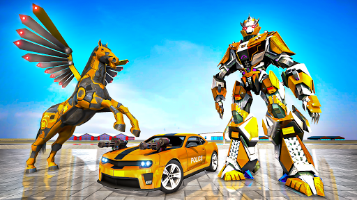 You might have played many robot fighting games & limo robot game plus horse robot transforming games but this grand horse robot transformation game comes with different challenges along with best fighting robots. Be ready to enjoy and start the robot war and engage yourself by attacking on enemies in eventual flying horse games by using special powers like flying, kick, punch, shooting and missile attack. Play with high tech superpower robots and flying horse robots in this flying horse robot transforming games and save yourself from enemy attacks. Be ready to fulfill your craze of playing horse robot games where you will save the world from evil robots in flying robot car games & robot shooting games. Get on your journey in real US police horse robot transforming game that encapsulating the thrill of ultimate robot car games and new robot games.