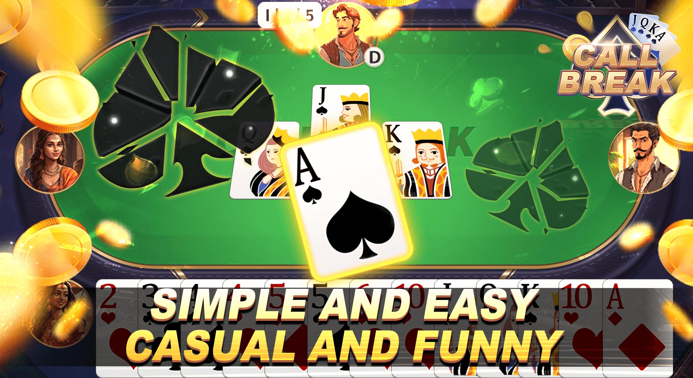 Call Break requires strategy and intelligence and is very challenging and is a deep poker game.