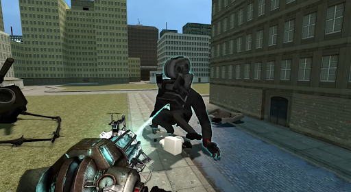 Roam the city and uncover its surprises. Your mission in Cameraman GMOD is to hunt down and eliminate the Skibidi Toilets. Be prepared - they are dangerous and quick. However, you'll find various guns and ammunition scattered throughout the city to aid in your mission.