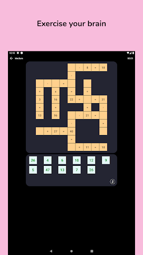 Solve a variety of math problems using addition, subtraction, multiplication, and division. But it's not just about calculations – you'll need to employ your critical thinking skills and logic to crack each puzzle. CrossMath isn't just a game; it's a brain-training workout that makes math exciting!