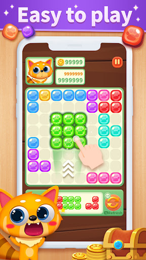 Enjoy the candy style block puzzle game for free! How to play? 1、 Tap the candy blocks to fill square. 2、 Try to fill blocks in a vertical or horizontal line to clear candy block. 3、 Eliminate more block and score more points.
