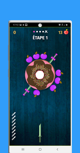 Tap the screen to throw a knife . Hit the candy with certain amount of knives, but avoid touching obstacles and other blades. Tap to hit the target, avoid all other knives! Aim to hit the spinning circle, precision counts and don’t make any mistakes!
