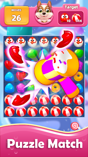 Candy Sweet Dog Puzzle Games is a new Match 3 Game that features adorable pets like dogs, dobs, beetles, ladybugs, and small insects. The game is easy to play but challenging to master. The goal is to eliminate a specified number of blocks or achieve a specified score within a given time or number of steps.