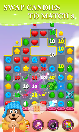 - Swap and match 3 or more candies of the same colour and shape. 🍭🍫🍭🍭