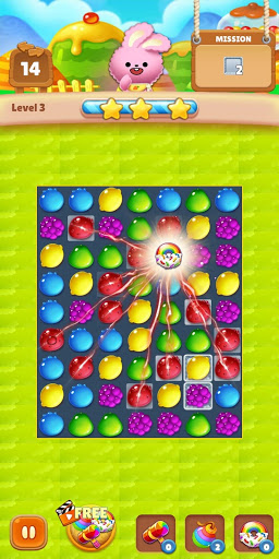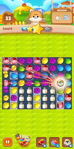 - Match 4 candy pieces to create the horizontal or vertical direction candy bombs. It can make a blast to destroy all candy in a row or column.