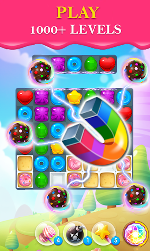 🎮 CRUSH, SMASH or BLAST sweet candies in this match 3 game as you can destroy everything from candy to chocolate, honey snacks, jelly treats, and of course, every candy you can imagine. Matching is addictive and easy, but beating all of the levels and mastering this puzzle game will be a true challenge.