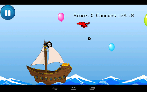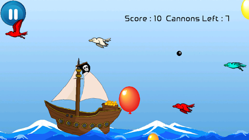 Show off your shooting skills in this skill based game. Take charge of a pirate ship sailing in the choppy waters of the Caribbean. Fire the cannons to blast floating balloons to increase your score - but do aim carefully as the air is thick with flying seagulls - avoid the white seagulls and shoot off the red and cyan seagulls.