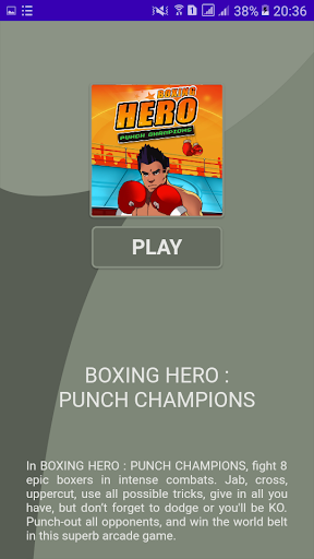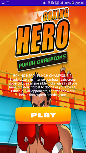 In BOXING HERO : PUNCH CHAMPIONS, fight 8 epic boxers in intense combats. Jab, cross, uppercut, use all possible tricks, give in all you have, but don’t forget to dodge or you'll be KO. Punch-out all opponents, and win the world belt in this superb arcade game.