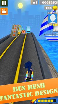 Run with the sonic super power and jump over obstacles and Bus run away from them as much as you can