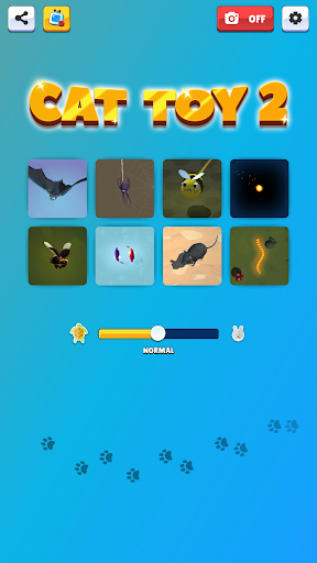 There are 8 different games for cats. You can adjust their speed and find the best option for your pet. With photo mode open, you can also save your cat's selfie into your gallery when it's trying to catch the toys.