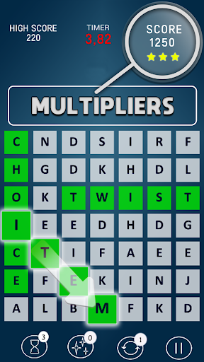Use special skills to solve word search blocks and beat the highest score