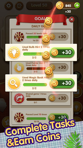 -Find as many words as possible to unlock levels and earn extra bonus coins.