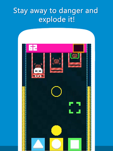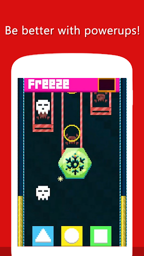 If you can't destroy them before they reach in danger zone, protected area of each shape will grow. Also pay attention to skulls as they can kill you in an instant. In order to destroy red shapes,