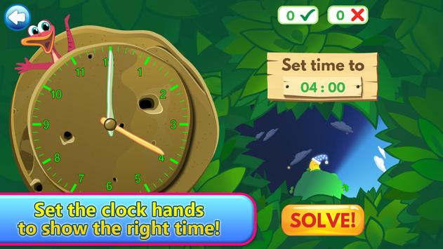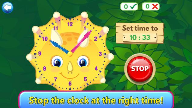 Choose a particular combination of hours and minutes, as the minute hand moves encourage your kid to press the stop button when the clock reaches the desired time. If the answer is correct you move on to the next task, if not, you try again. Or position the hands to set the correct time. If your kid gives three correct answers in a raw, it will get a star as a reward. Collect five stars and you get a dinosaur or a decoration for your virtual park. Cute dinosaur themed clocks and decorations will enhance kids' motivation in playing free “interactive telling time activities” and collecting the stars will serve as a challenge so that they will play these “learning games for toddlers” and preschoolers more often and practice telling the time over and over again. “Educational games for kids” like Telling Time - Clock Games are a must, don't miss the opportunity to offer your child an easier way to learn!