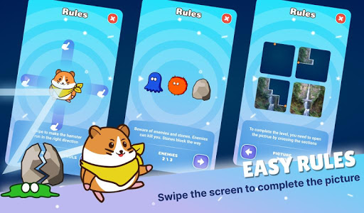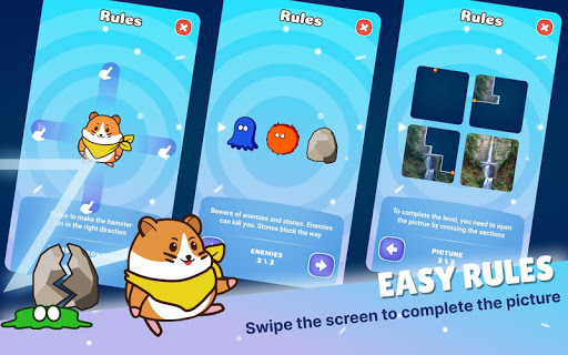 The fun game “Go Hamster!🐹” has a great variety of monsters and it’s getting harder to fight them with every new level because the number of monsters is growing and they move faster and faster! To move, just touch the screen and quickly move your finger in one direction towards the wall. You should avoid contact with monsters and not allow them to intersect your trajectory.