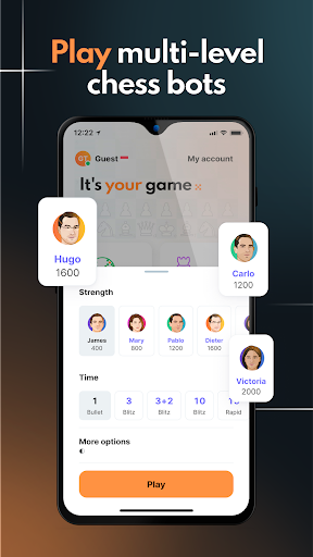 - Play chess against a computer opponent even when offline - no internet connection required (choose between 5 avatars)