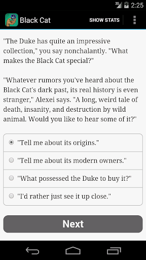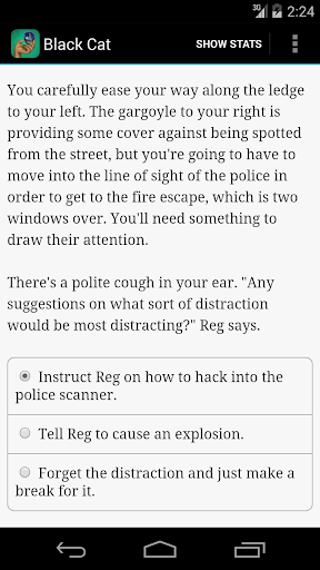 “Thieves’ Gambit: The Curse of the Black Cat” is an interactive heist caper by Dana Duffield, where your choices control the story. It's entirely text-based--without graphics or sound effects--and fueled by the vast, unstoppable power of your imagination.