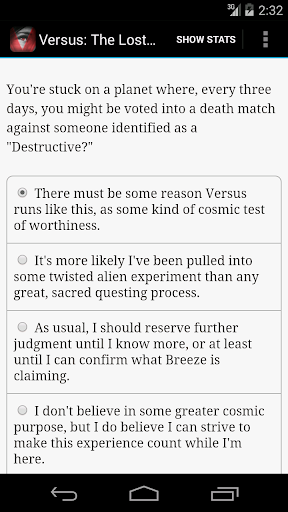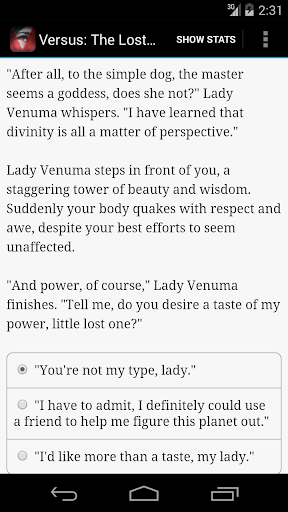"VERSUS: The Lost Ones" is a thrilling 123,000-word interactive novel, the first in a new series, by Zachary Sergi, author of our best-selling "Heroes Rise" trilogy. Your choices control the story. It's entirely text-based--without graphics or sound effects--and fueled by the vast, unstoppable power of your imagination.