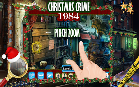 You are having 100 uniquely designed hidden object scenes in Christmas crime hidden objects game. Seek and find all the objects in each hidden theme, and as you move further subsequent levels will be unlocked.