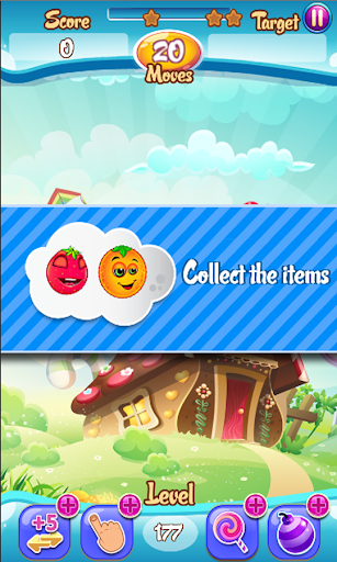 • Collect all kinds of fruits to win the level before you run out of moves