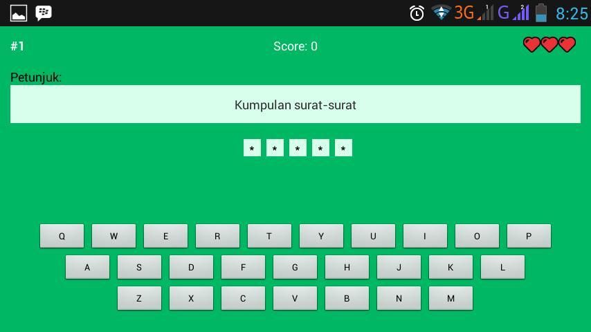 Game tebak kata adalah game berupa teka-teka kata dimana pemain dapat menebak kata yang tersembunyi. Kata yang tersembunyi tersebut ditutupi oleh bintang-bintang (*) pada tiap hurufnya. Setiap soal diberikan petunjuk dari kata yang akan ditebak. Pemain diberikan 3 kali kesempatan salah menebak. Pemain dapat menginputkan 1 huruf pada kolom jawaban dibawah tulisan masukkan huruf, kemudian klik Periksa. Tidak ada bantuan pada game ini.