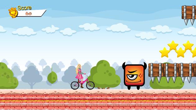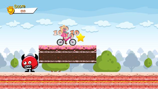 Sara ride Bike. Jumping over the monsters, collect the coins. Collect all the coins to make the maximum score.
