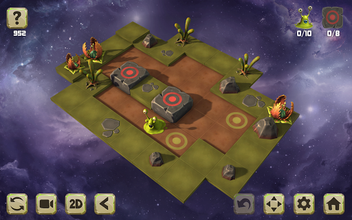 Keep in mind, you can only move the alien or the storage box into EMPTY spaces in Sokoban Galaxies 3D. You can't jump over boxes/rocks.