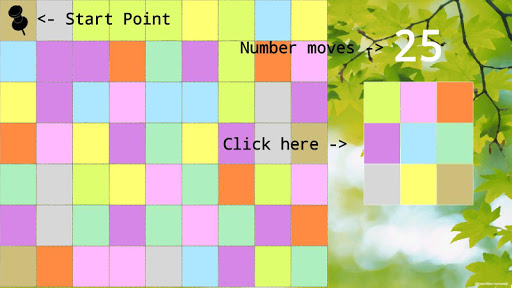 Color the grid with the same color! In the game of colors you against the device! At the beginning is generated an array of colored cells. Each cell is painted one of nine colors shown in the right panel. After generating the grid, the system solves the game with a set number of attempts as the value of challenge and sets the number of moves lower than found to solve it. To win you need to color the grid using a number of moves lower than those found by the device. The starting point is the top left corner with the symbol of the needle. To play, you must select a color in the right pane. The click on a color change is dyed, with that specific color, to all the cells connected with the upper left corner. The color to be selected indicatively is the one that maximizes the number of cells that you can gain with that color. In this way you flood the areas surrounding the cell starting with the color selected with the goal of making all the grid cells of the same hue.