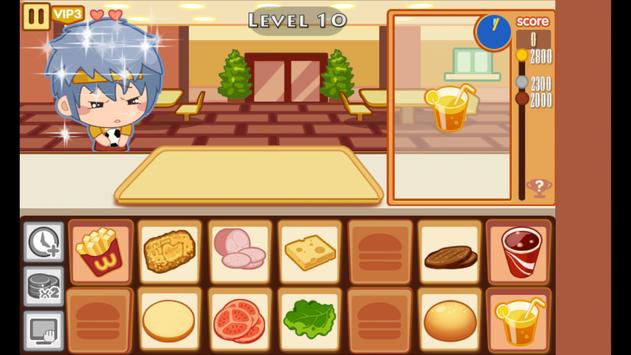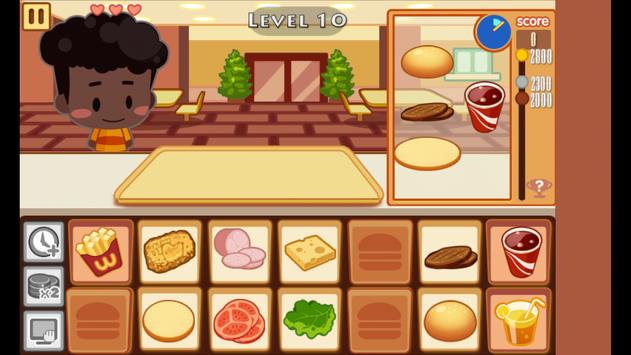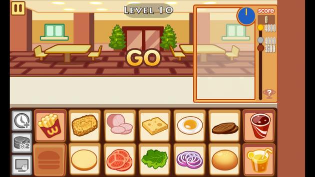 Add all sorts of different toppings and choose from a variety of burger options. Set your place and choose a drink to go with the meal. Cash in lots of Highscore points, but beware to lose a life, would be a pity if you lose all your highscore points. Make yourself the Burgerking!