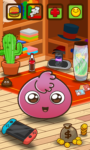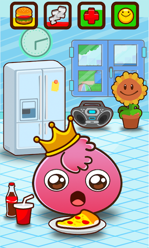 is like a real pet, it needs to eat to grow and feel strong and healthy. Open the fridge and choose healthy or junk food: hamburger, pizza, sushi, fruit, chips, waffles, sandwich, icecream, cakes.. also some cold drinks like Coke or Monster to get some extra energy.