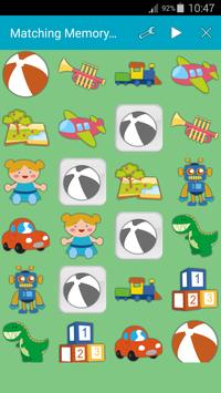 Matching- Memory game for kids is a game to train kids memory, this is game for education, fun for all children with colorful images so children will like it. Rule of this game is very simple just making same between two imgaes, When all the images is matching, you will have completed the game. To achieve the highest score, you must finish matching adorable image as quickly and with the fewest mistakes as possible.