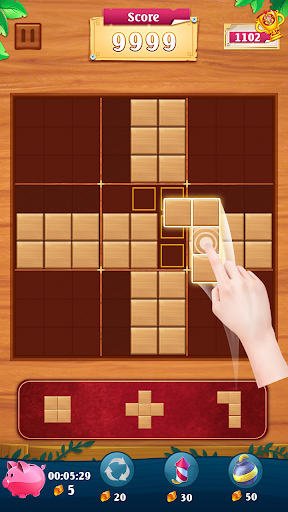 - Drag and drop the wooden blocks on a 9x9 grid, familiar to all Sudoku fans.
