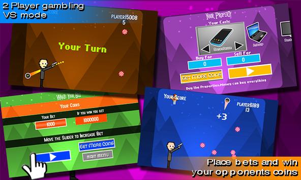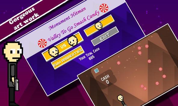 He's sick of candy and out to kill it. Help your hitman take down all the candy targets in the valley and get rich with coin 's at the same time. Super simple controls and addictive 1 or 2 player mode. Battle for coin 's in gambling mode and buy all your dream stuff - a car, a plane, even buy the earth !! Just swipe on the hitman to aim your ball, and let go to fire. Try to hit more with 1 shot. Now go blast some candy !!!
